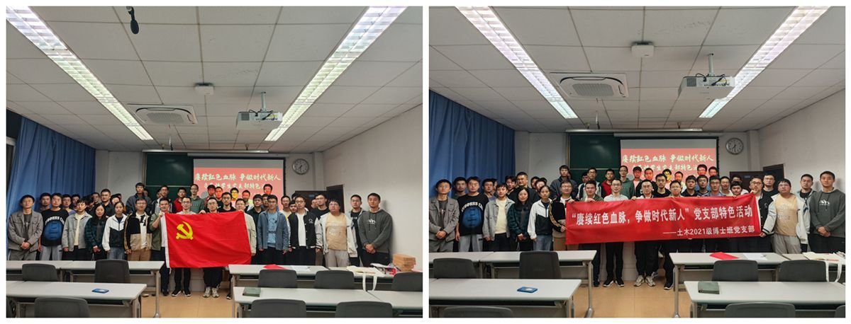 2023年11月6日,土木2021级博士班党支部、机械2022级博士班党支部在逸夫馆4222教室联合开展了“赓续红色血脉,争做时代新人”党支部室内理论学习活动。