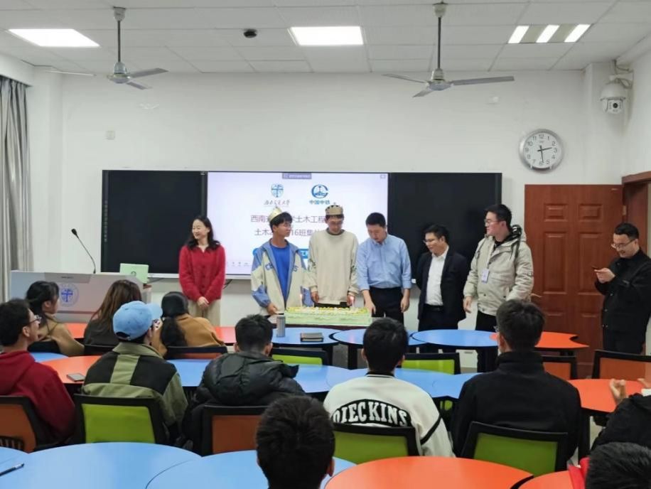 首先,导师向同学们介绍了中铁八局优厚待遇与员工福利,刷新同学对中铁八局的认知,在欢声笑语中,导师们给大家送来了定制蛋糕,为第四季度过生日的同学们过一个集体生日会,在温馨的氛围中,大家一起为这些同学献上生日歌。