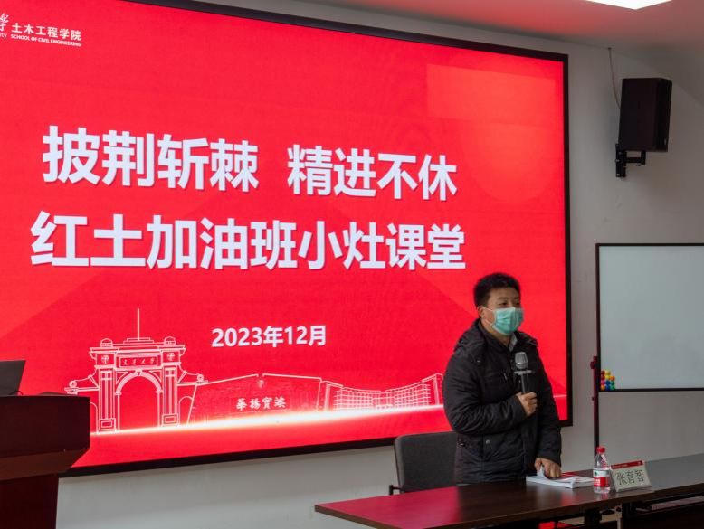 辅导员杨颖钊老师主持,张育智老师主讲《混凝土结构设计原理》。