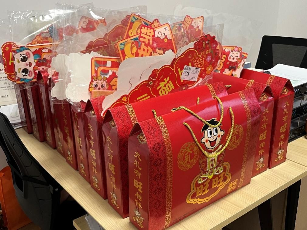 为每一位留校学生精心准备了“红小土陪你过大年”新春慰问大礼包,此外,还准备了营造节日氛围的“福”字、春联、红小土玩偶等小礼品。