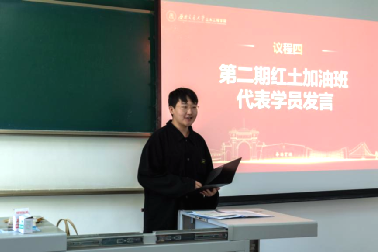 随后来自21级的何同学作为第一期红土加油班进步突出的学生代表,上台总结了自己一路走来心得,她指出,自己来到这个班级,带着披荆斩棘的勇气,在加油班老师同学们的帮助下实现自我的进步。同时她也以自己为例,激励同学们“翻越心里的大山,实现心理的蜕变”。