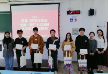 设立了“学业进步奖”和“学业努力奖”,分别表扬在第一期加油班中获得学分最高的同学和顺利解除预警并遵守班规班纪的同学。团委书记刘萍老师作为嘉宾上台颁发证书及红土大礼包,她鼓舞同学们在未来学习生活中一鼓作气,早日达到毕业要求。