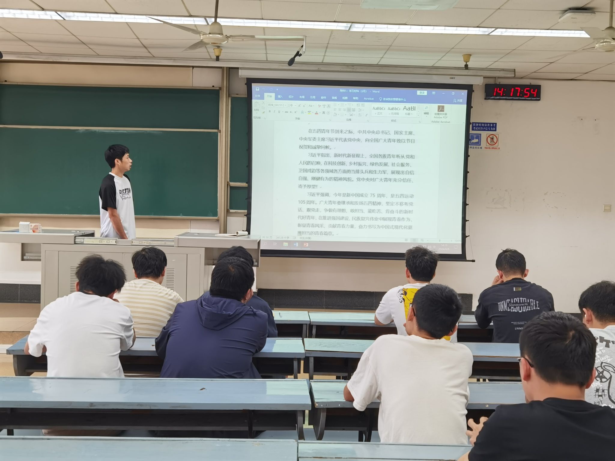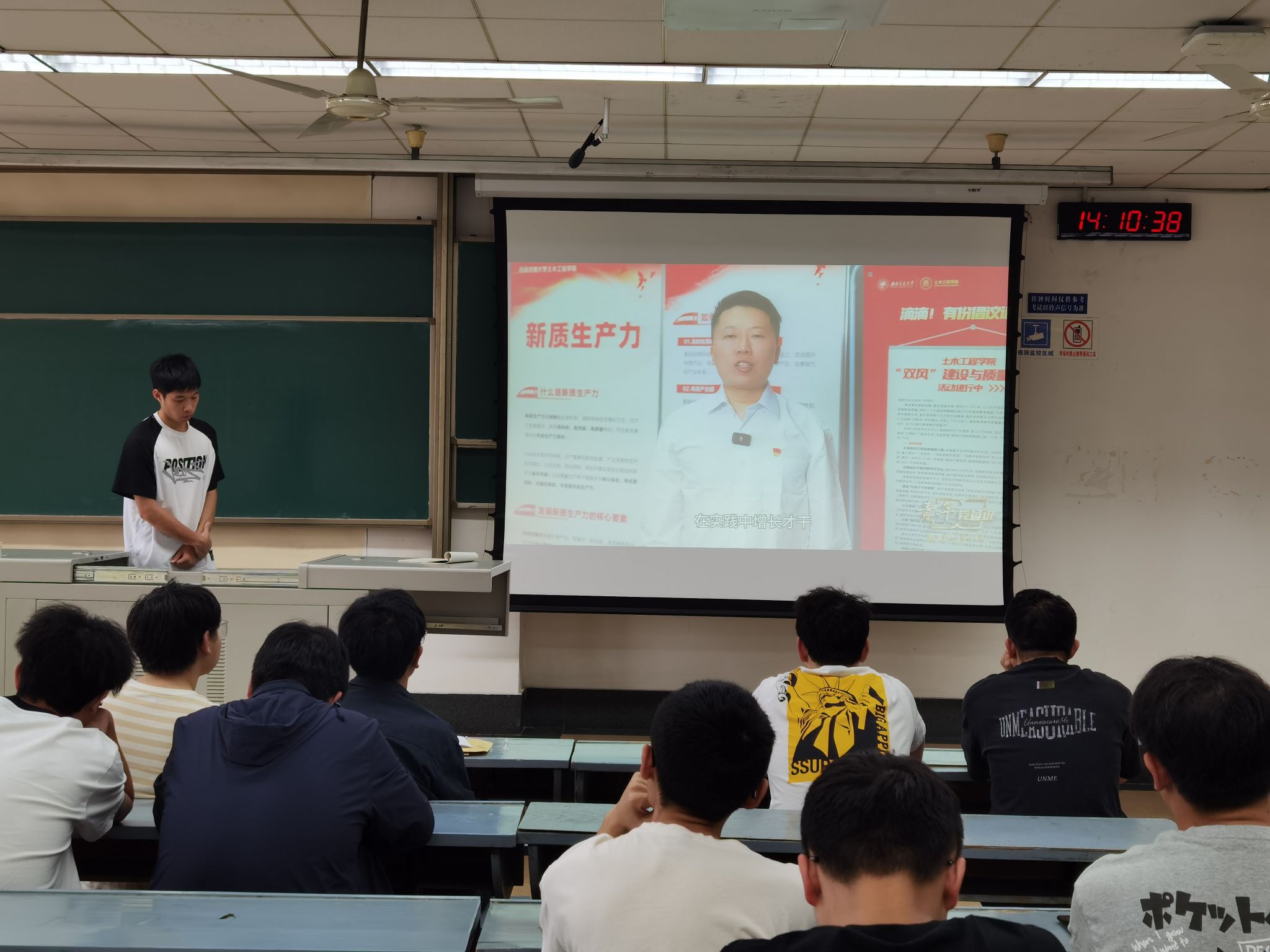 2024年6月6日下午2:00,2022级硕士岩土2班党支部在4507B教室召开主题党日活动,活动的主要学习内容:学习贯彻习近平总书记对学校思政课建设作出的重要指示精神、习近平总书记五四青年节寄语、持续深入学习《中国共产党纪律处分条例》。本次会议由2022级硕士岩土2班党支部书记黄宇鹏同志主持。
