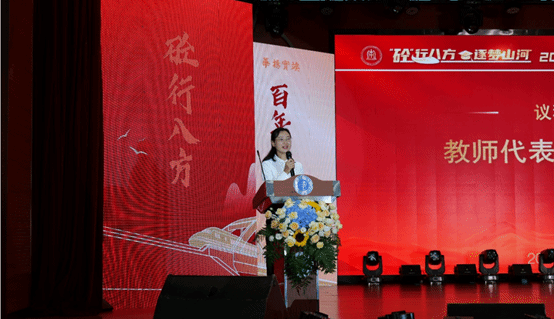 教师代表于丽老师在发言中将自己与交大结缘28年以来的三点感想与毕业生们共勉:一是永葆热爱与好奇,做使命担当的追求者;二是接受失败敢于突破,做敢为人先的拼搏者;三是懂得感恩与温暖,做有情有义的交大人。