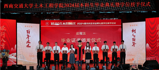 2024届优秀本科毕业生表彰决定》,并为优秀毕业生代表颁发证书。37名本科生获“四川省优秀大学毕业生”荣誉称号、93名本科生获“西南交通大学优秀毕业生”荣誉称号。