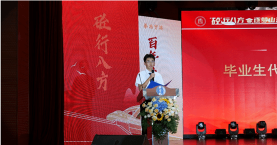随后,毕业生代表沈少石发言,感谢母校、师长与同窗。他回顾了大学四年的成长与收获,并承诺继承和发扬交大精神,努力成为有理想、敢担当、能吃苦、肯奋斗的新时代青年。他代表毕业生祝福母校桃李芬芳、再谱华章,祝福足球盘