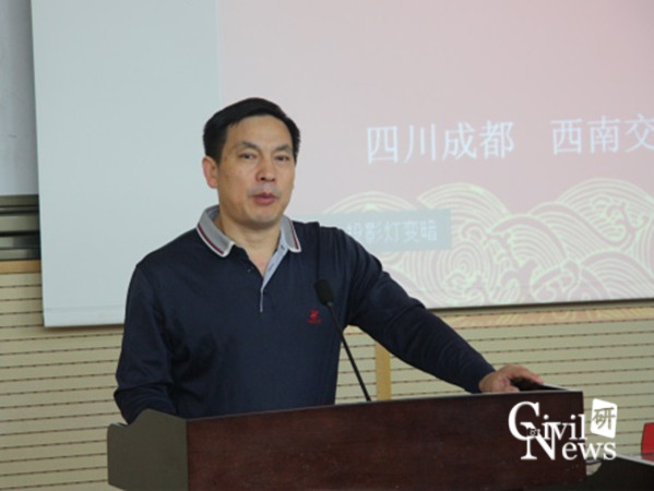 任宝良副院长代表西南交通大学致词。任宝良副院长对参加本次培训班的全体师生表示热烈欢迎,他表示,西南交通大学117年的建校历史一直以发展中国的铁路事业为己任,对本次培训机会西南交通大学深感荣幸和责任重大,将不负众望,努力办好培训班。在教学形式上,学校将采用更加灵活的研讨形式,促进老师与学员之间的交流与沟通,并建立长久深厚的关系,希望学员和老师之间能多沟通多交流,立足铁道事业,共同为社会做出贡献。最后,任宝良副院长提醒所有师生注意天气变化,保持身心健康,并且强调了安全问题。