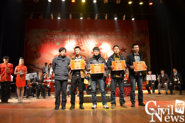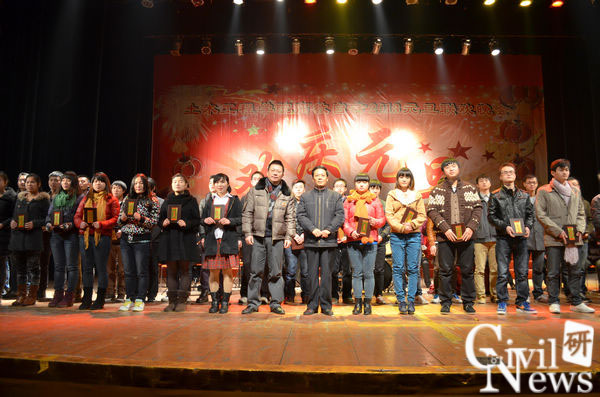 之后,江富长老师及任保良副院长给2012-2013年度34名“三好学生”、23名“优秀班干部”及“自强杯”篮球赛获奖者颁奖。在简单的合影留念后,晚会正式开始。