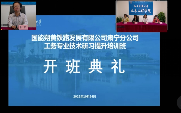 202210月24日上午八点三十分,由足球让球盘 继续教育培训中心承办的“国能朔黄铁路发展有限公司肃宁分公司工务专业技术研习提升培训班”开班典礼在腾讯会议平台顺利举行。