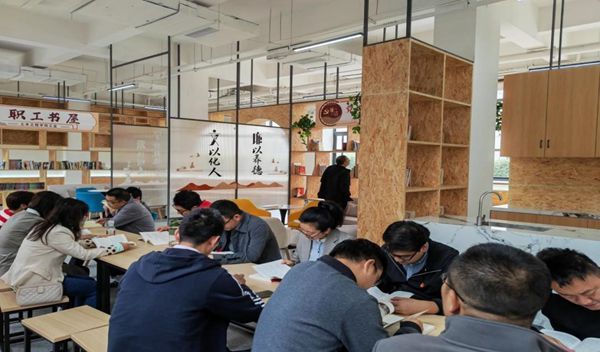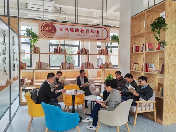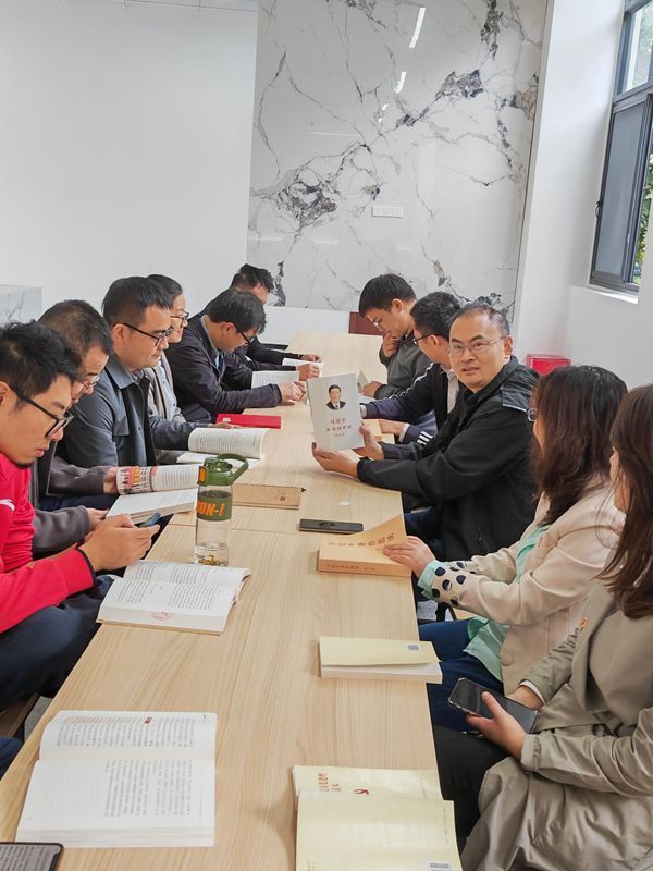 党风廉政教育教育基地的书刊架,借阅了习近平新时代中国特色社会主义思想、党风廉政、师德师风等相关书籍,进行了集体专题阅读。随后,大家分享了书籍的精彩内容及阅读心得体会,进行了好书推荐。最后,党员们还来到了职工书屋书架,对感兴趣的书籍进行了浏览和讨论,展现了广大党员爱读书、善读书的良好精神状态。