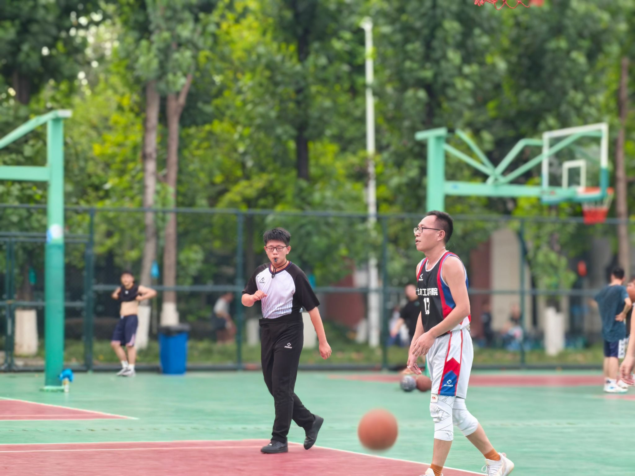 教职工篮球队的队员们斗志愈发昂扬。1/4 决赛面对计算机足球盘