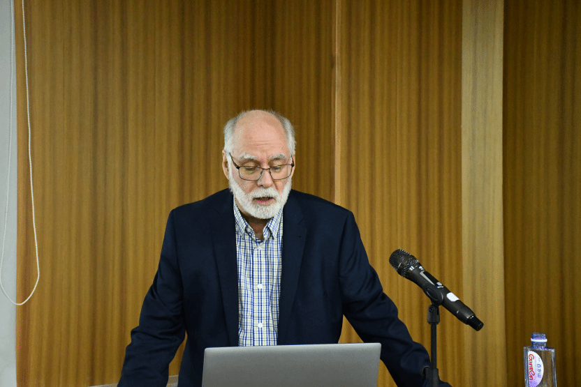 After the lecture, Professor Bathurst and the participants had discussions on the application of the AASHTO Stiffness Method, and he shared his rich experience in this field of more than 40 years.