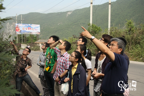 08年汶川地震以来,张建经教授一直关注着213国道都江堰至映秀段沿线支护工程的情况,已进行过多次考察。结合现场情况,张教授向学生仔细讲解了公路路基和边坡结构在地震作用下的破坏现象以及后期国道改造过程中采用的加固措施。对于沿线支护结构产生破坏的具体原因,张教授和同学们进行了开放式的探讨。张教授鼓励学生积极思考,以期对学生在今后的科研工作中有所启发。