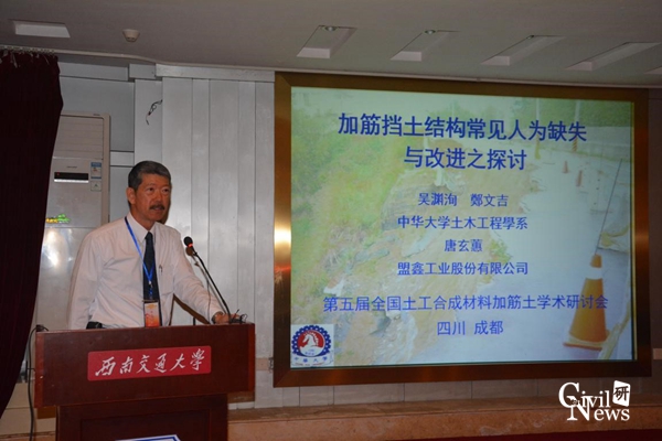 本次报告会的内容主要集中在加筋土的理论设计研究,与会专家从古代工程出发,介绍了土工工程的发展,并提出加筋土结构的缺点与改进方法,之后对土木格栅、土工织物、土工膜等加筋土结构进行了详细的分析,展现了全国在土工结构加筋机理研究的最前沿成果。