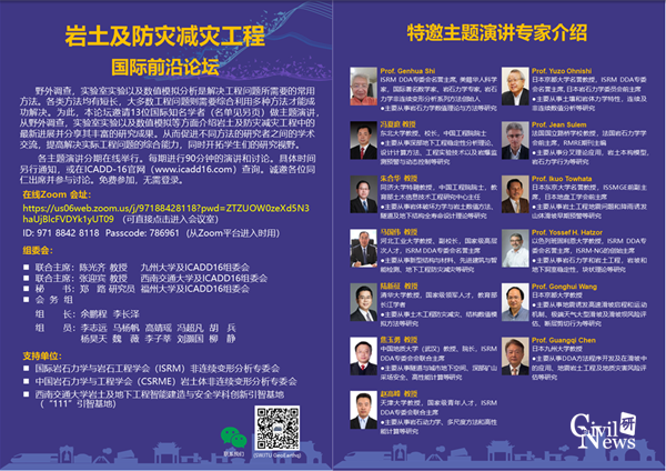 2023年10月,第十六届国际非连续变形分析会议(ICADD-16)将在成都西南交通大学召开,欢迎广大师生持续关注。相关报告PPT和报告视频通过西南交通大学岩土地震工程团队微信公众号发布(已经报告人授权),敬请关注公众号获取所需材料。