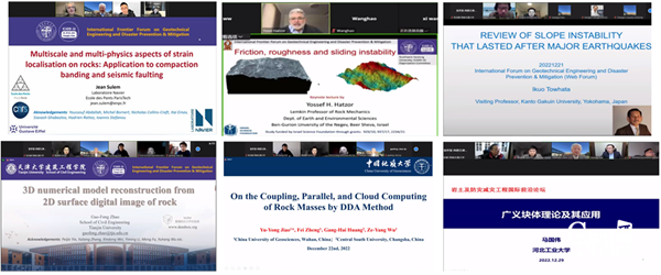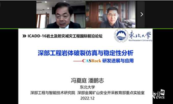 2023年3月3日,岩土及防灾减灾工程国际前沿论坛第12、13次特邀报告于9:30在线上Zoom平台顺利召开。本次论坛依托岩土及地下工程智能建造与安全学科创新引智基地,由西南交通大学和第十六届国际非连续变形分析会议组委会共同主办,日本九州大学陈光齐教授和西南交通大学张迎宾教授任联合主席,福州大学郑路研究员任秘书。东北大学冯夏庭教授和日本九州大学陈光齐教授分别做了题为《深部工程岩体破裂仿真与稳定性分析——CASRock研发进展与应用》和《岩土工程和地质防灾数值模拟技术的研发及实际应用》的报告,报告由河北工业大学副校长马国伟主持。