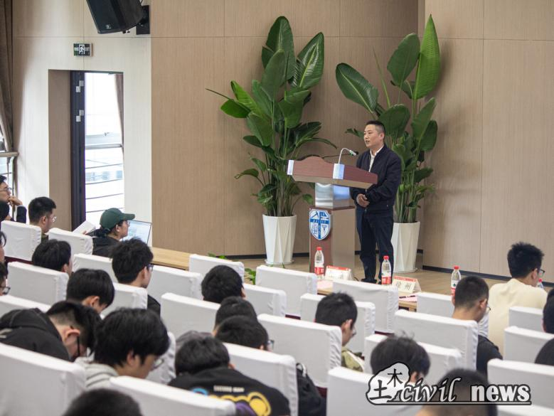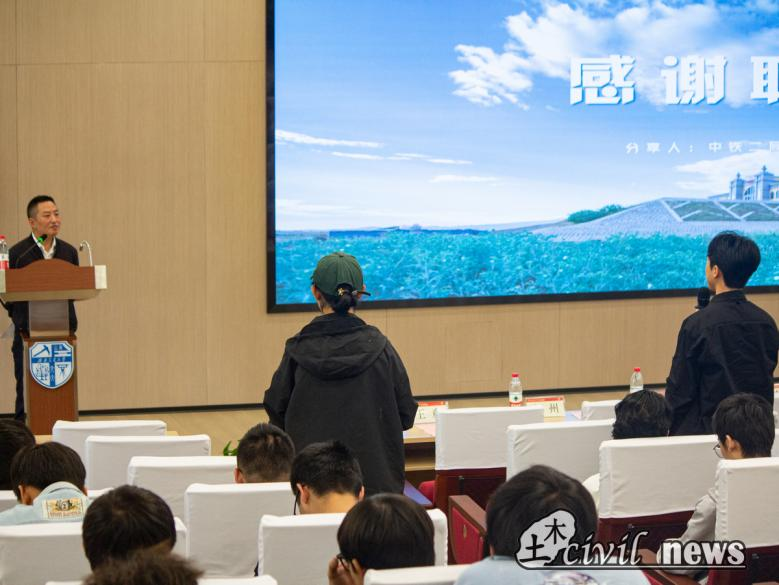 随后徐州校友展开分享。自参加工作以来,徐州校友曾先后担任中铁二局六公司埃铁二分部土木工程师、磨万二工区工区长等职。在单位里,因具备丰富的工作经历和扎实的业务能力,徐州被工友们亲切地称为“一人可当两人用的‘双人徐’”。徐州校友在讲座中讲述了自己在毕业择业、基层工作及个人成长等方面的小故事,分享了自己十八年来从迷茫失意到成长醒悟再到坚定信念的转变历程。他表示:“我所有的底蕴都来源于基层业务工作的沉淀,正是这份来自基层的磨炼成就了今天的自己!”