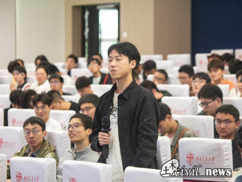 在互动提问环节,同学们就人际交往方式、行业发展前景及个人能力提升等方面向徐州校友提问。徐州校友耐心回答同学们的问题并提出个人建议和解决方法。在讲座最后,徐州校友寄语广大交大青年:“既要胸怀广阔,又要脚踏实地,勇于在时代的洪流中发挥个人特长、争做新时代中国特色社会主义现代化建设的‘螺丝钉’和开拓者!”