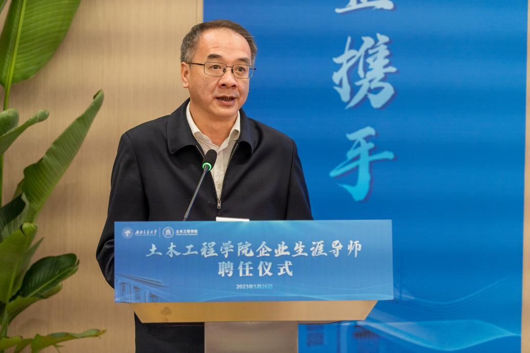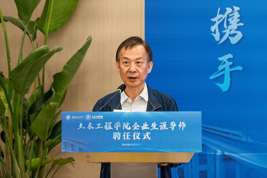 能再接再厉,将“新土木·欣土木·心土木”的工作实施方案持续深入推进落实。讲话最后,余敏明副书记再次对各位企业生涯导师为广大学生提供的职业生涯规划指导和实习实践就业机会表示感谢,并希望同学们心怀家国、心怀感恩,踔厉奋发、砥砺前行。