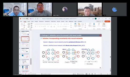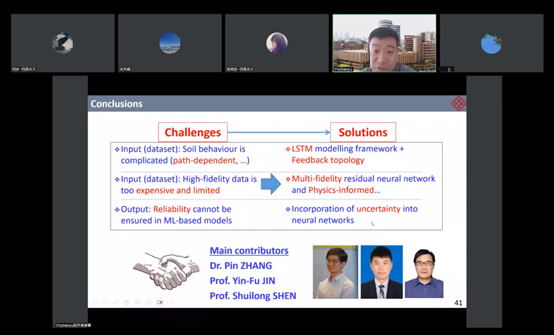 随后,由本次论坛的报告人,香港理工大学的尹振宇教授详细介绍了他团队在推进机器学习方法在土本构模拟中的实践工作。尹教授阐述了数据驱动的本构模拟方法,并强调该方法在土力工程领域具备广阔前景。他深入探讨了相关的研究挑战,如复杂土体行为的建模、高保真度数据获取的高成本和有限性等问题,并分享了相应的解决措施。此外,尹教授展示了数据驱动模型在边界值问题中的应用,并呈现了一些实际案例,为与会者提供了宝贵的学术借鉴,加深了大家对利用机器学习方法模拟土本构的理解。