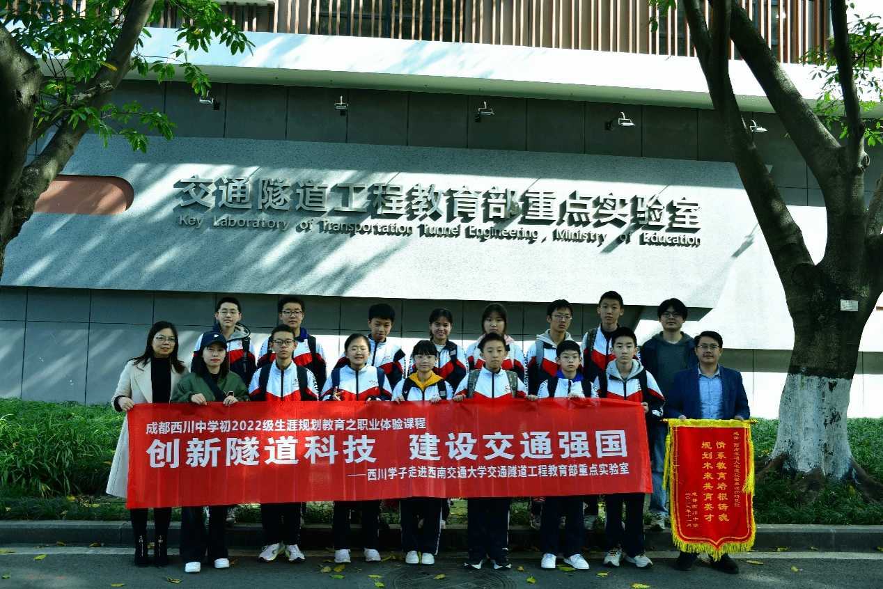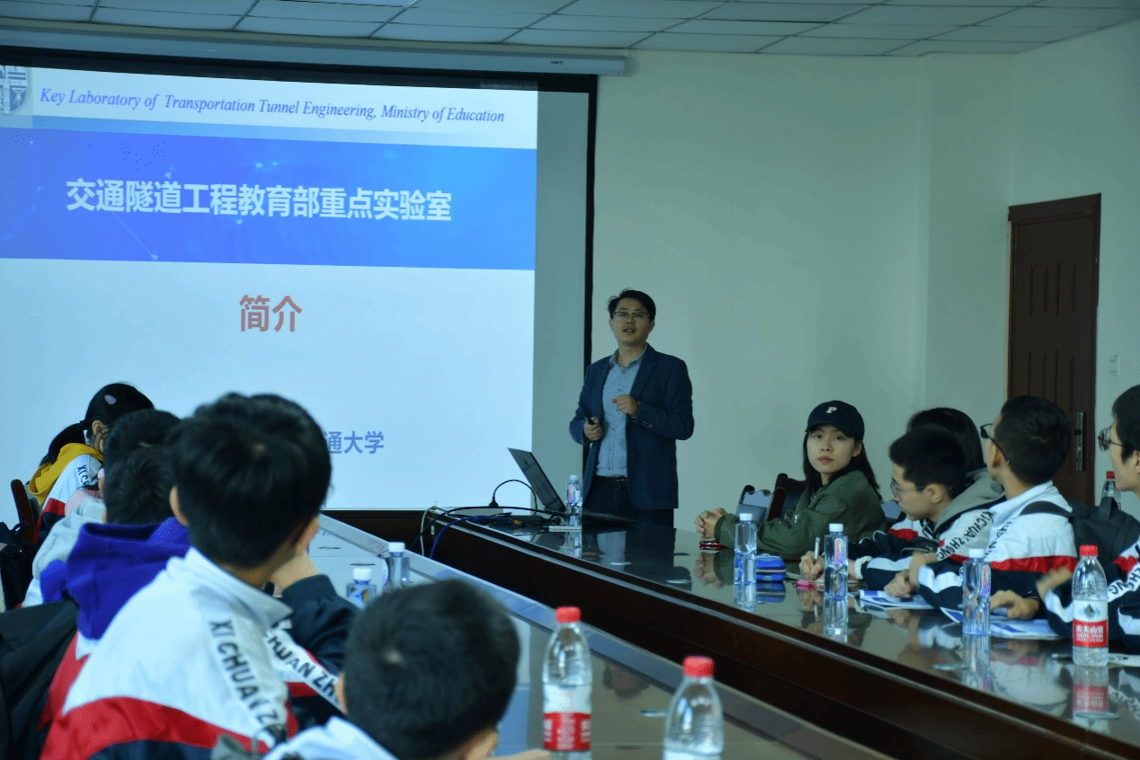 2023年11月16日下午,成都市西川中学师生走进西南交通大学交通隧道工程教育部重点实验室,进行为期半天的参观交流。地下工程系姚超凡老师,硕士研究生张逸飞、刘语泉代表交通隧道工程教育部实验室出席了本次活动。本次参观活动主要分为实验室设备参观和科普讲座两部分。此次活动让西川中学的同学们近距离了解隧道工程的魅力,也增进了同学对对隧道工程专业的认识。