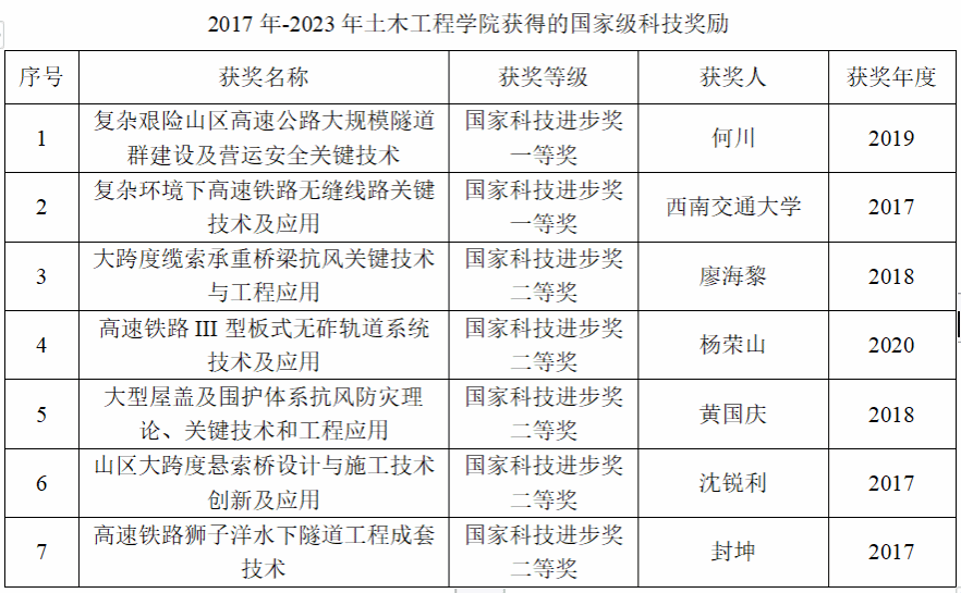 完成科研经费到账逾11.7亿元,累计合同经费达16.6亿元。新增主持国家自然科学基金项目 207 项,其中,重点项目、联合基金项目,优秀(含海外优青)项目共计20项;承担国家重点研发计划项目 2项(课题 8 项);承担各类工程应用项目、企业技术研发项目共计2200余项,单项合同经费500万以上的重大工程项目13项。新增高水平论文 5100 余篇,其中SCI论文2000余篇;授权发明专利650余项,获批率保持50%以上。新增国家级科技奖励7项,省部级科学技术一等奖30余项。其中,何川院士主持的“复杂艰险山区高速公路大规模隧道群建设及营运安全关键技术”项目,荣获国家科技进步一等奖,成为足球让球盘