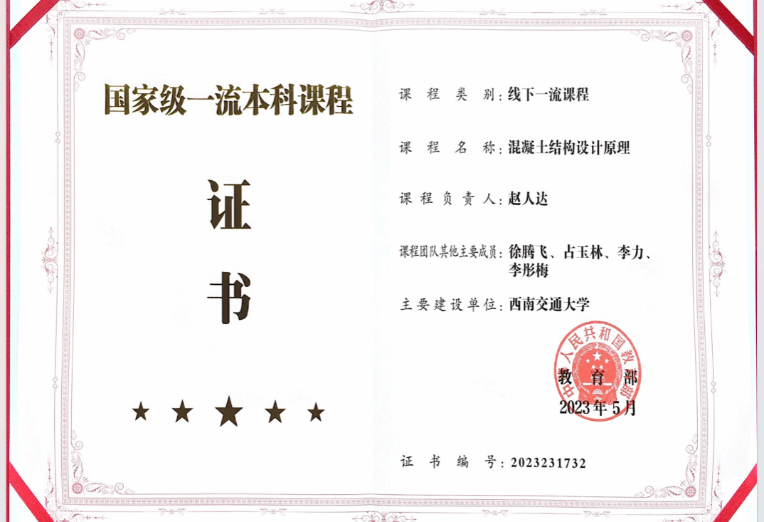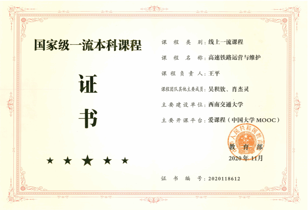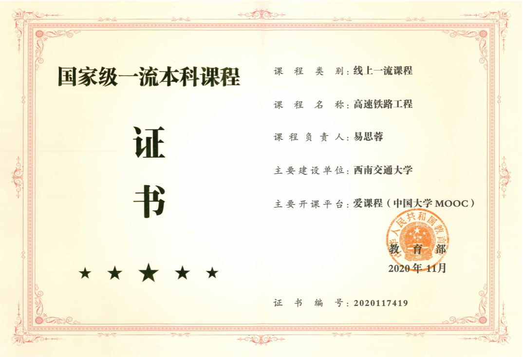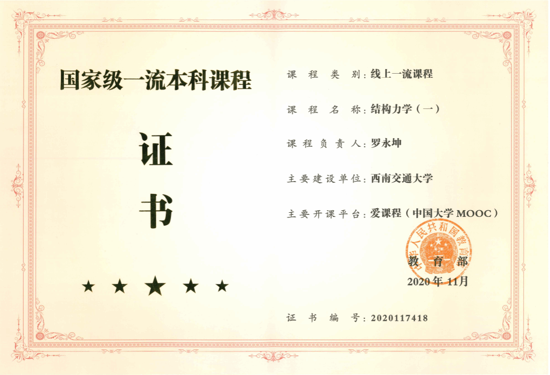 10门国家级一流本科课程证书