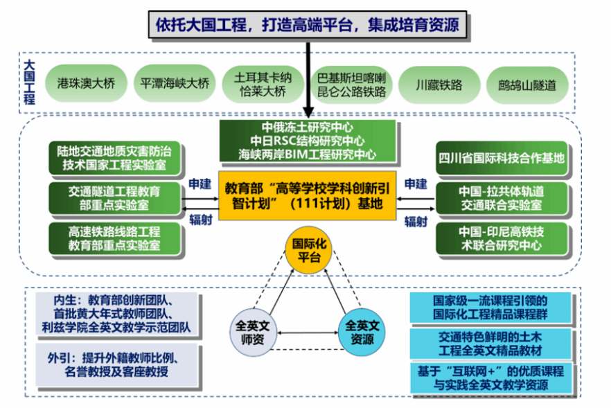 在国际合作交流方面,抢抓“一带一路”倡议和“高铁走出去”等战略机遇,瞄准“双一流”建设和朝着“交通特色鲜明的综合性研究型一流大学”总目标,以全面提升土木工程学科的国际影响力,打造具有国际竞争力的人才培养体系和国际学术制高点为目标,以教师国际化为关键,以学生国际化为落脚点,以办学国际化为手段,以氛围国际化为助推,走出了一条一流国际化足球盘