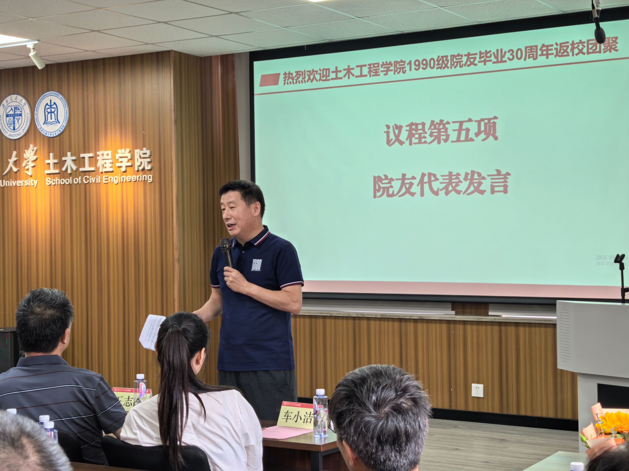 工作表达了感谢之情。同时,他着重强调了加强校友联系工作的重要性,希望能够更好地服务校友、联络感情,增强西南交大土木校友的身份认同感,促进学校与校友、校友与校友之间的合作发展,也希望校友们能够关注学校的发展,并鼓励大家继续为土木专业的发展做出贡献。