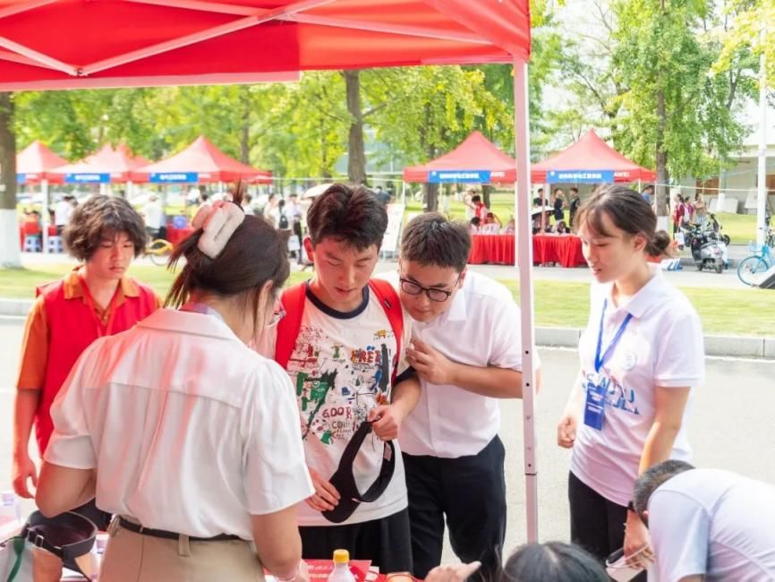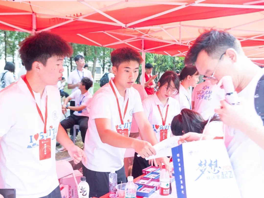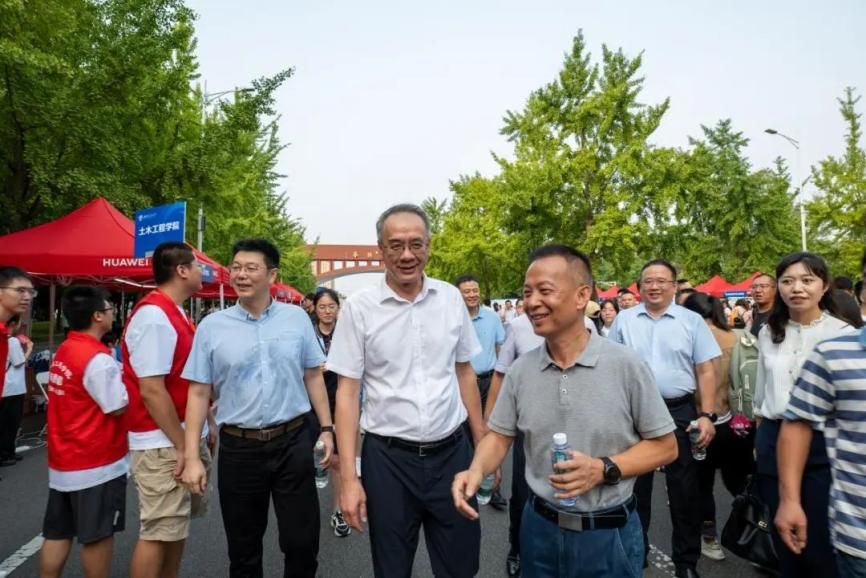 盛夏的高温抵不住新生的热情,也同样阻挡不了来自学校的热切关怀。学校党委书记余敏明、校长闫学东一行莅临迎新现场,对足球盘