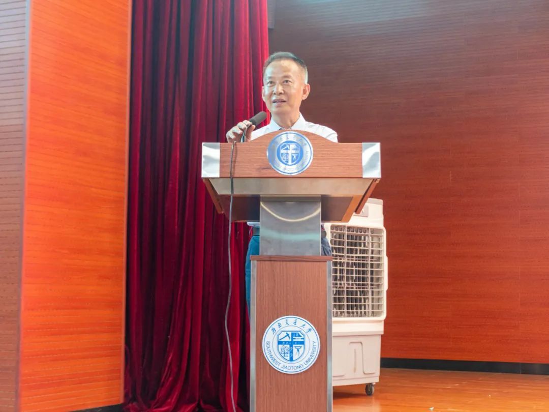 院长蒲黔辉,副院长富海鹰、王明年、陈嵘,党委副书记兼副院长车小洁,道路与铁道工程系主任杨荣山,桥梁工程系主任李永乐,地下工程系主任方勇,建筑工程系主任余志祥,岩土工程系副主任冯君,陆地交通地质灾害防治技术国家工程研究中心执行副主任庄卫林,BIM及图学研究所副主任尹紫红出席典礼;2024级本科生班导师、辅导员到场观礼。典礼由党委副书记刘萍主持。