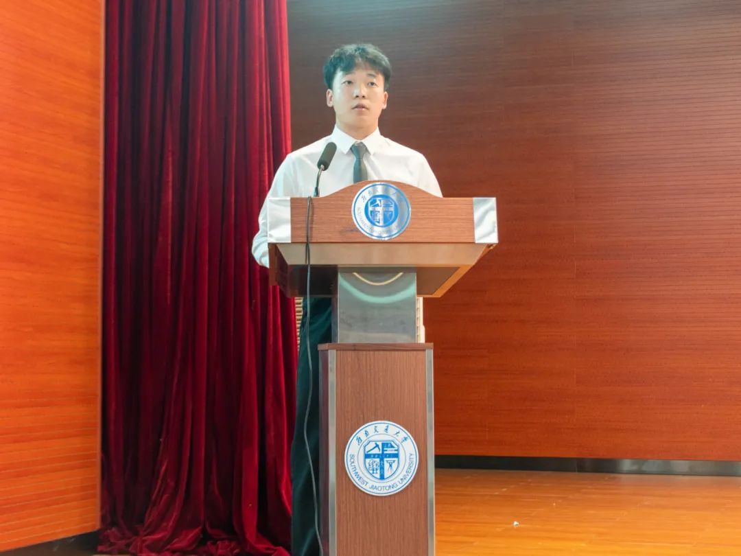 2021级的宋雨宸作为优秀学生代表发言。他详细讲述了自己在大学期间参加各类竞赛和学生组织的成长历程,并从自身经历出发,号召新生“少一些推脱,多一些担当;少一些盲从,多一些探索;少一些安逸,多一些拼搏”,做好规划,努力耕耘,相信同学们能够在土木足球盘