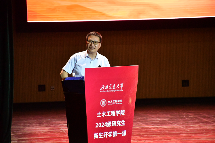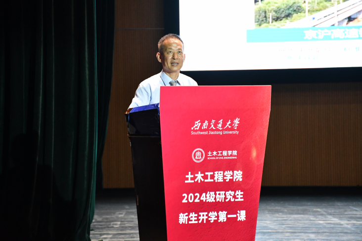 接着,研究生导师代表李永乐教授分享了三点深切体会。李教授鼓励新生珍惜研究生阶段的宝贵时光,将其作为职业生涯的起点,努力提升自我,将个人成长与国家需求紧密结合。他勉励大家,要在科研中发现乐趣,勇于面对挑战,不断提升自己的韧性和抗压能力,为新时代强国建设贡献交大力量。