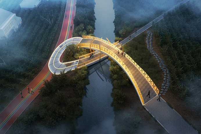 成立了茅以升公益桥团队,在桥梁工程行业先辈、大师的指导下,继承茅老志愿,积极践行公益理念,持续为学生参与赛事提供坚实保障,并积极推动公益小桥建设。竞赛团队在首届“茅以升公益桥——小桥工程”创新设计大赛中设计的公益小桥——湖北省麻城市中馆驿镇曹家坳村彭家垸小桥,已于2019年建成通车;另一座足球盘