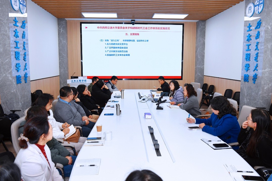 和谐发展具有重要意义。会议分为两个阶段,第一个阶段,由王艺霖主席领学《中共西南交通大学委员会关于构建新时代工会工作体系的实施意见》;第二个阶段,各系室工会小组长总结2024年工会工作,并对2025年工会工作提出意见和建议。