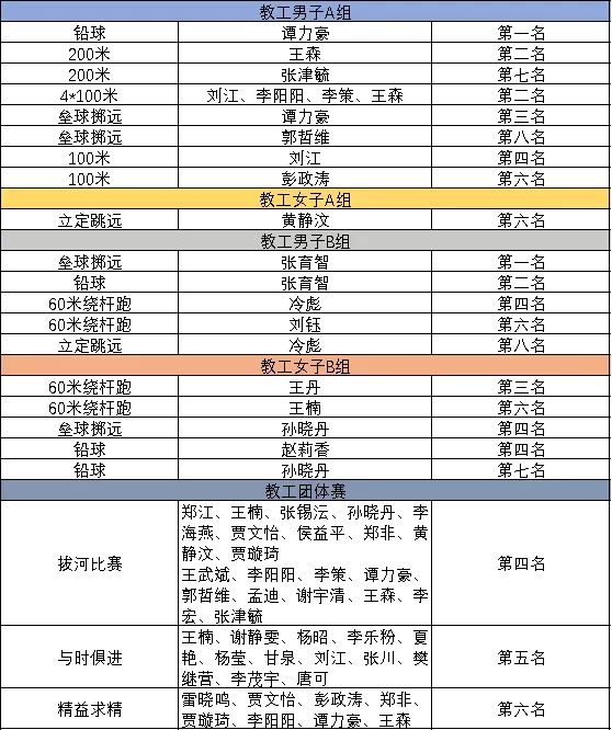 斩获学生甲组总成绩桂冠;教职工们同样不甘示弱,最终教师组总成绩位列甲组第四名。并且土木足球盘