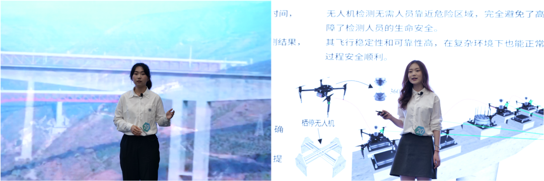 决赛现场,20位选手大显身手,各展风采。有的以悉尼海港大桥为例,揭秘跨越数年的力学奇迹;有的拿出精心制作的模型道具,阐释智能建造中3D打印技术如何赋能未来人居……在主题多样、特色鲜明的展示中,选手们思路清晰,用生动风趣的语言深入浅出地讲解知识点的原理、应用及优势,展现出智能建造与智能运维的科技魅力。