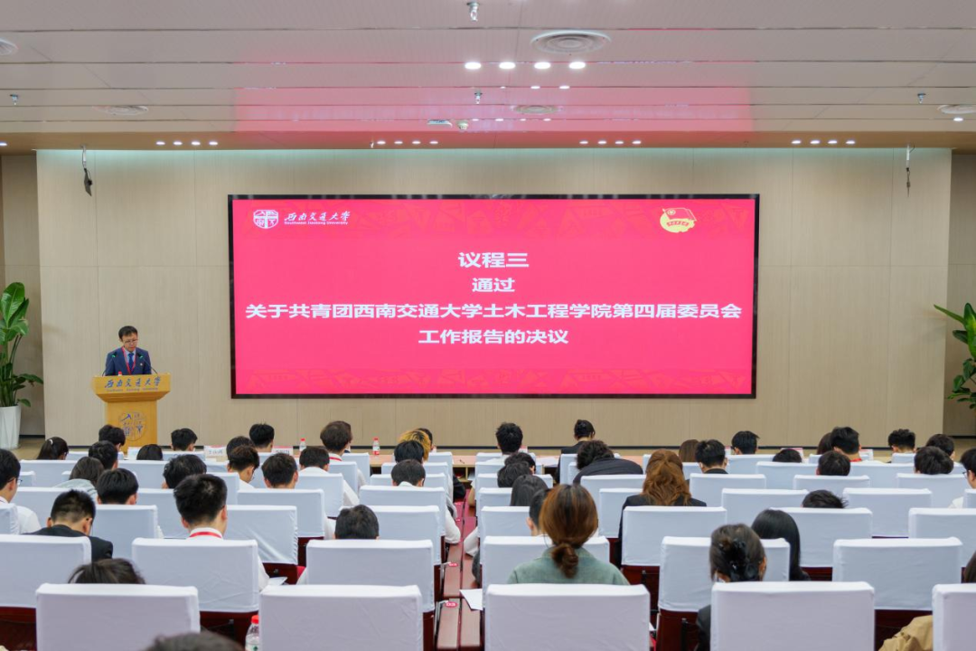 第四届委员会作了题为“红土精神淬青春力量,实干担当绘土木华章 在习近平新时代中国特色社会主义思想指引下团结引领西南交大土木青年挺膺担当”的工作报告。报告全面、客观地总结了第四次代表大会以来的工作实效,对当前工作中存在的不足进行了分析与思考,进一步提出了未来工作的主要任务和前进方向。