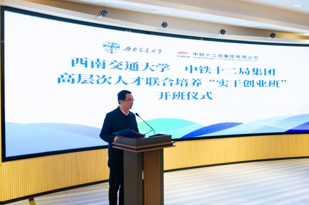 12月3日下午,学校与中铁十二局集团在犀浦校区“双一流”会议中心数字孪生互动教学中心举行高层次人才联合培养“实干创业班”开班仪式。中铁十二局集团党委委员、副总经理王栋,西南交通大学党委副书记高平平出席会议并致辞。中铁十二局集团公司党委干部部部长、人力资源部总经理赵宏旺,党委干部部副部长、人力资源部副总经理王喜波,足球让球盘