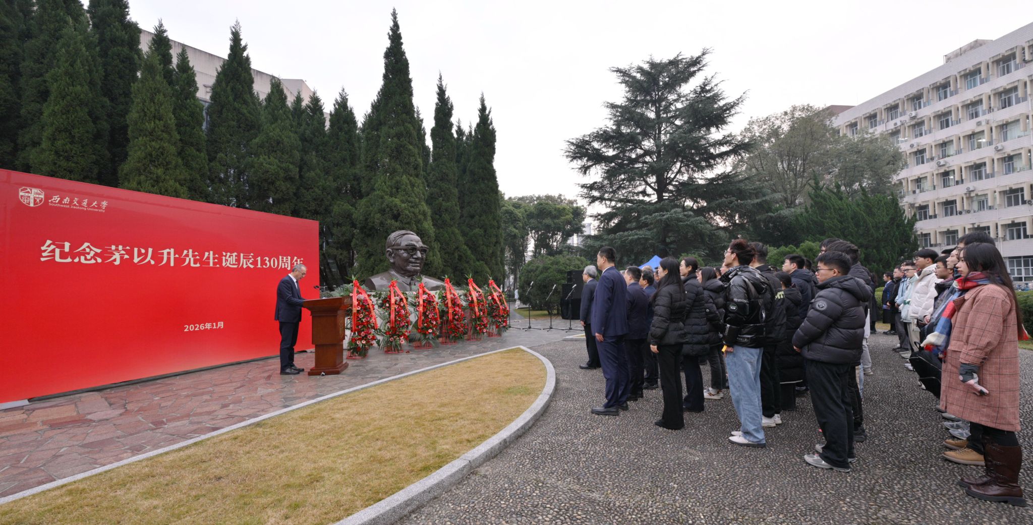 闫学东代表学校对与会嘉宾表示欢迎。他表示,茅以升先生曾4次出任学校校长,在颠沛流离中为学校守住文脉根基。在茅以升精神的感召下,学校牢记为党育人、为国育才初心使命,矢志培养服务强国建设的栋梁之才,一代代交大人秉承“竢实扬华,自强不息”的交大精神,扎根祖国大地,勇担时代使命。站在新的历史起点,全体交大人要将今日的缅怀转化为明日攻坚克难、矢志报国的实际行动,在建设一流大学新征程上,在全面推进中华民族伟大复兴的时代洪流中,共同架设更多通往美好未来的“奋斗之桥”。
