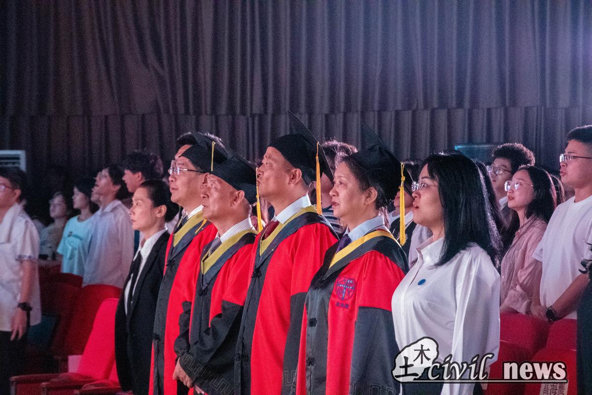 最后,全体起立,奏唱校歌。在“文轨车书郅大同”的激昂合唱中,足球让球盘 2023届本科生毕业典礼落下帷幕。祝愿他们扬帆起航,凌峰破浪,成为土木菁华、国之栋梁!