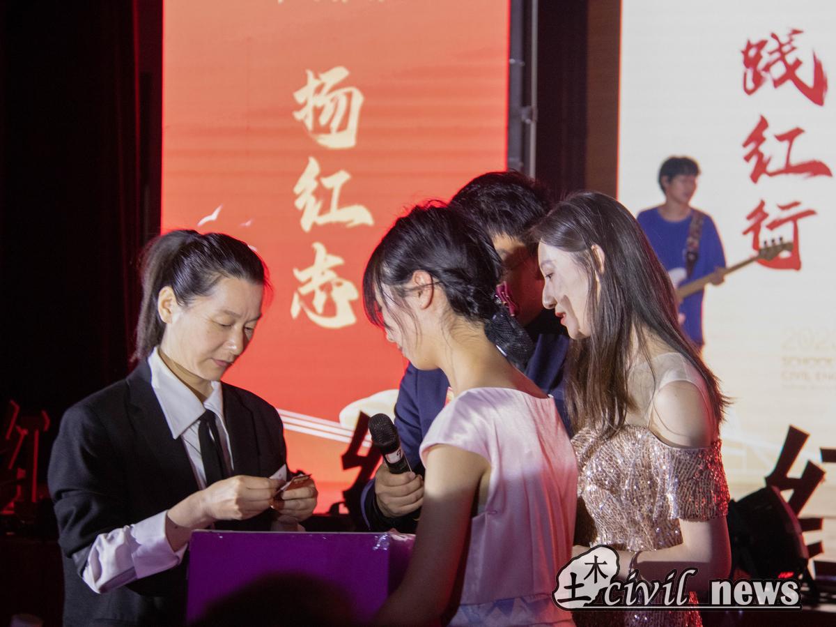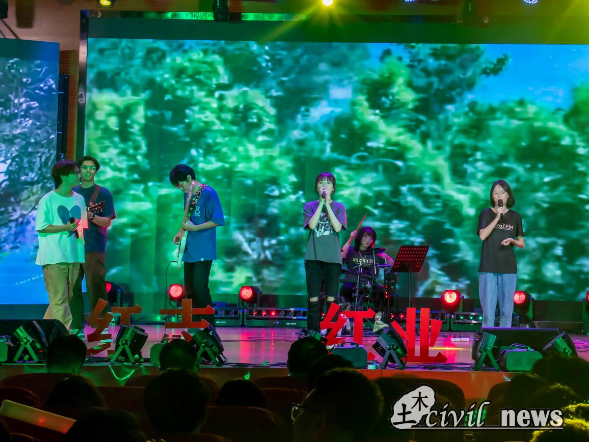 随后迎来晚会的第二篇章“立红业,践红行”:乐队表演《回不去的夏天》唤醒大家那年盛夏的美好记忆,传递了“青春不留遗憾”的洒脱与自信;舞蹈《我们》旋律舒缓,优美的舞姿表达了依依惜别之情;诗朗诵《再别虹桥》述说了毕业生对校园的浓烈不舍和勇敢追梦的自信昂扬;光影剧《下一站,远方》抒发了对毕业生前程似锦的美好祝愿。