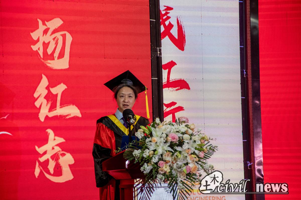 随后,教师代表赵莉香副教授发言。赵莉香回顾了与学生相处的美好瞬间,鼓励同学们时刻保持自信,勇担家国责任,斗志昂扬,蓄势待发。奔赴下一场山河,拥抱属于自己的精彩人生。