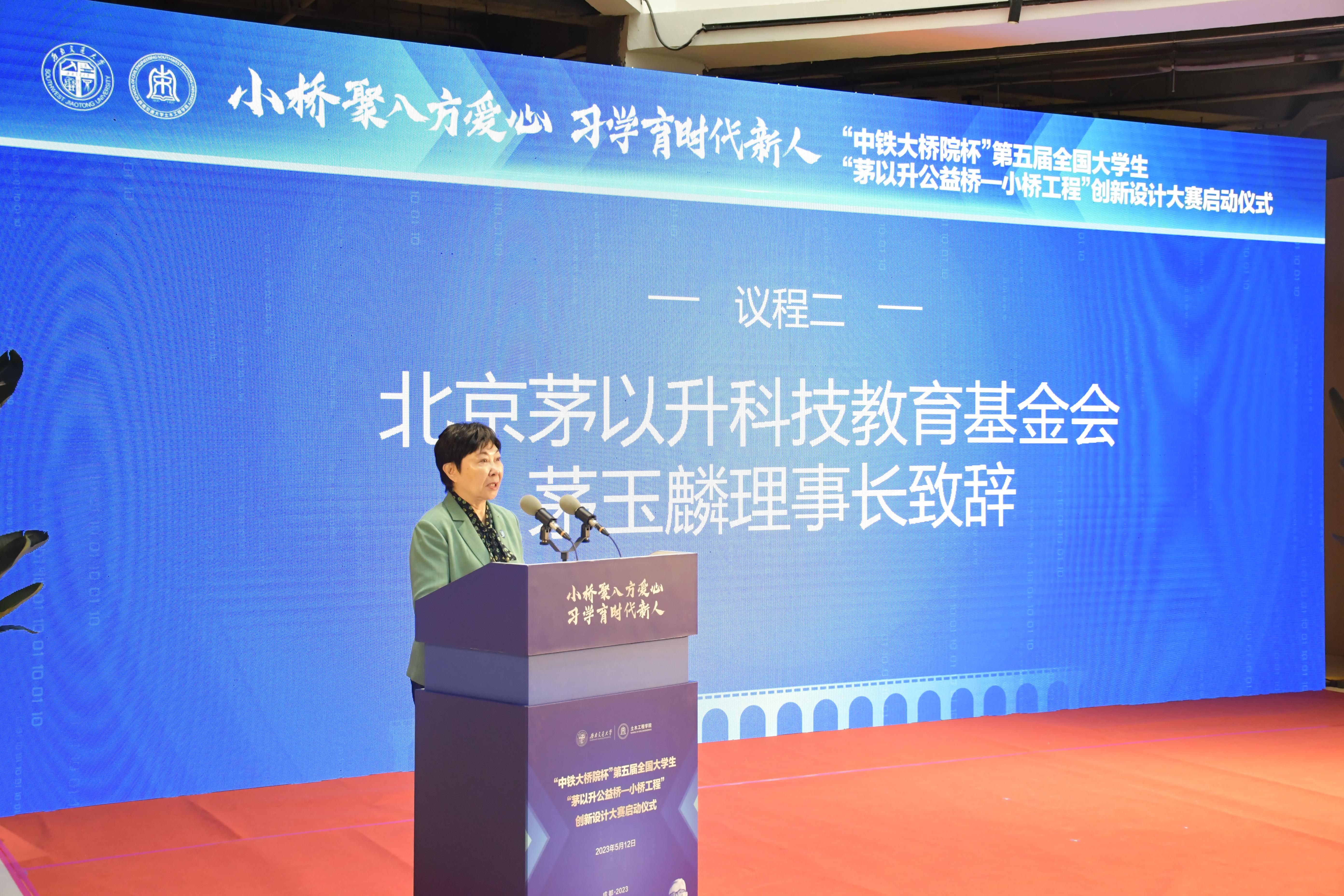 第二部分由北京茅以升科技教育基金会茅玉麟理事长发表致辞。作为茅以升先生的女儿,茅玉麟女士在看完她父亲留给西南交大的祝福视频之后潸然泪下。“之前我从未看见过这段视频,如今再度看见父亲的身影,心中满是怀念与感慨。此次大赛并非‘纸上谈桥’,我们将不断践行茅老边习边学的思想,将优秀的作品落地于祖国的贫困山区之上。”茅女士表示道。