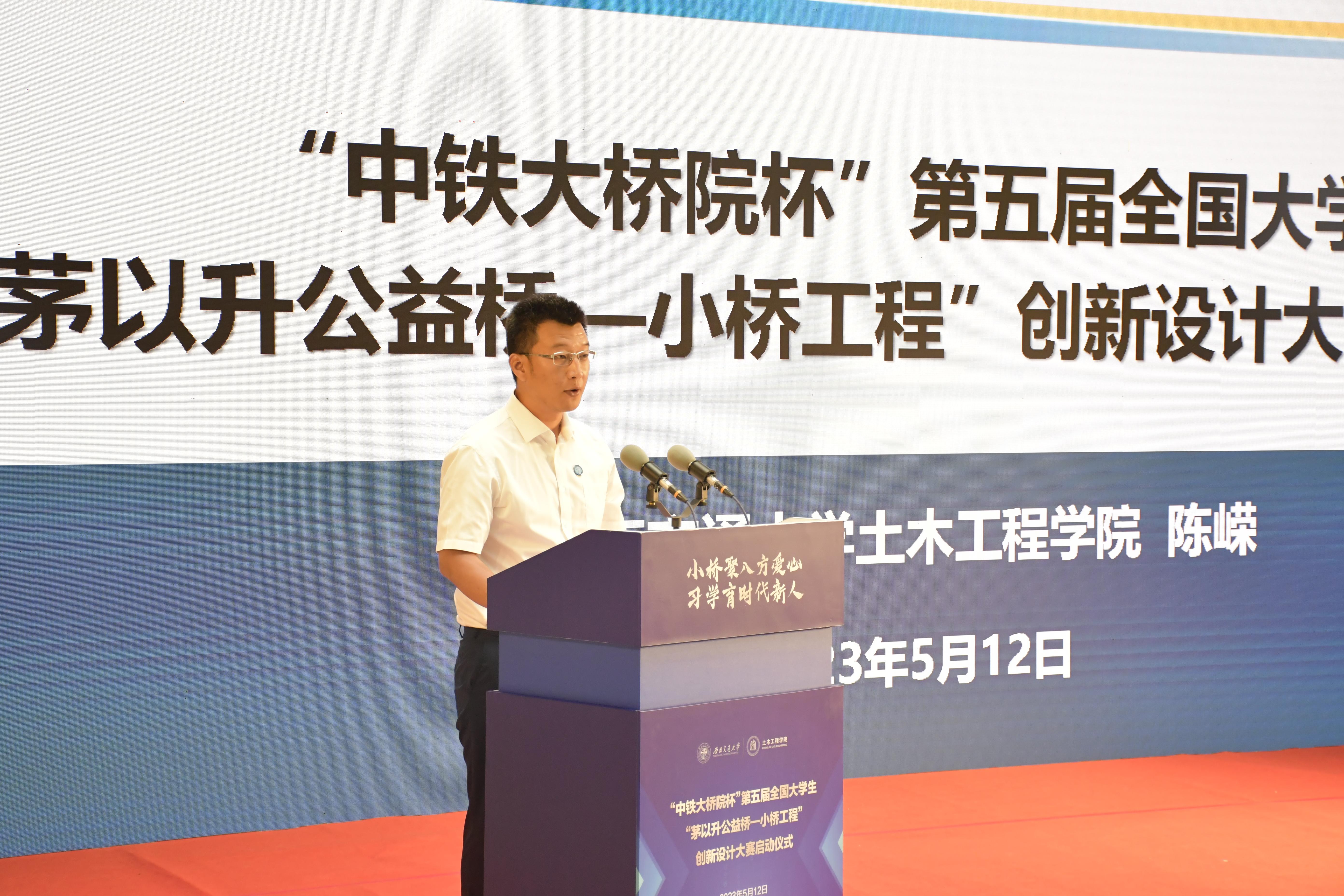 2023年5月12日上午9:30,在西南交通大学九里校区茅以升图书馆内,举行了“中铁大桥院杯”第五届全国大学生“茅以升公益桥——小桥工程”创新设计大赛启动仪式。出席此次启动仪式的嘉宾包括原铁道部常务副部长、北京茅以升科技教育基金会主任委员孙永福院士、北京茅以升科技教育基金会茅玉麟理事长、西南交通大学副校长康国政教授、中铁大桥勘测设计院集团有限公司党委书记、董事长黄燕庆先生、北京茅以升科技教育基金会秘书长刘晓光以及学校和院系领导、组委会成员、部分高校参赛代表等。启动仪式由足球盘-足球让球盘