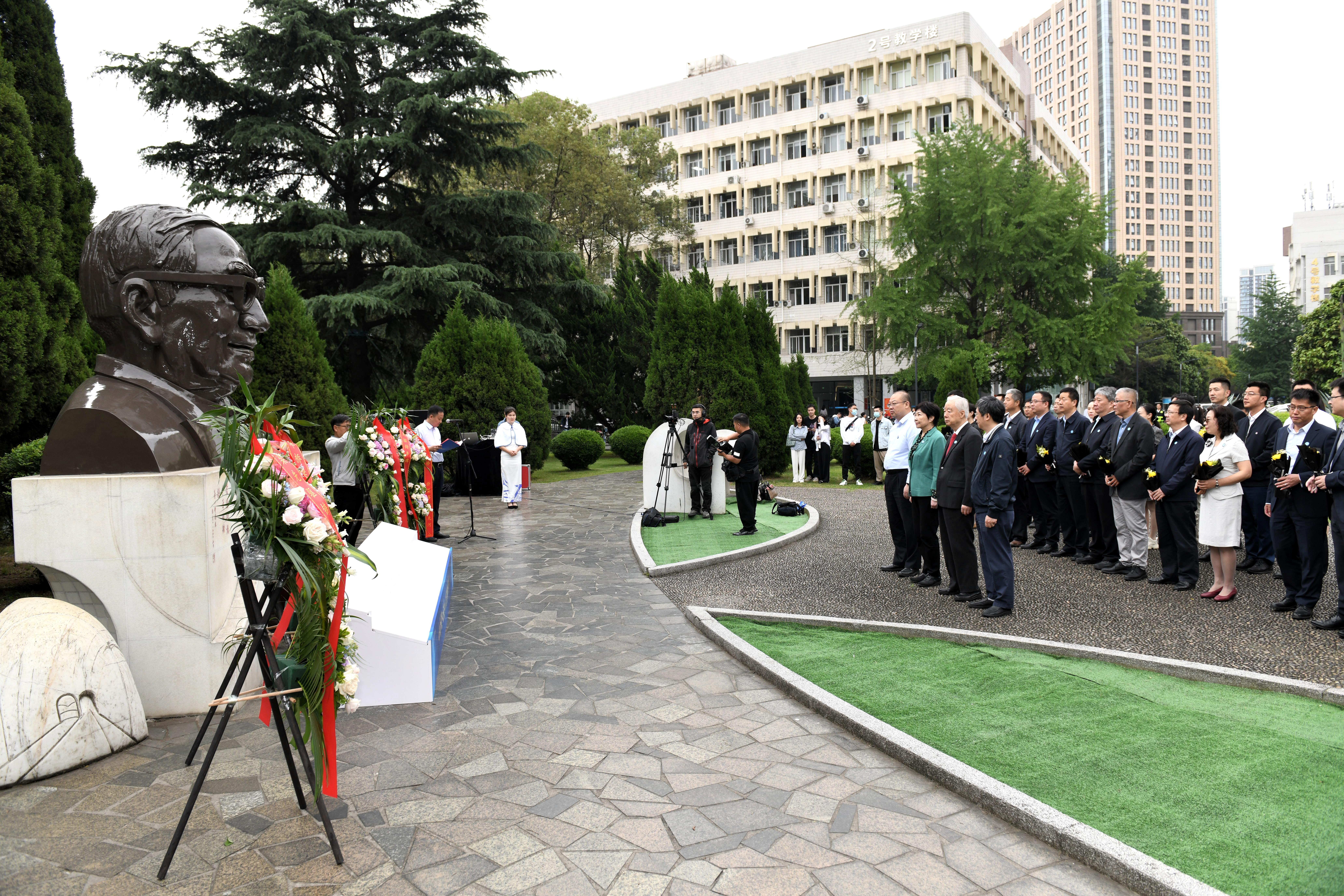 启动仪式正式开始前,首先进行了茅以升先生的纪念仪式。高平平书记在茅以升先生的铜像前向在场各位讲述了茅老与西南交大的渊源并鼓舞大家“追忆不朽功勋,重沐先辈光辉”;随后,由孙永福院士、茅玉麟理事长、康国政副校长、黄燕庆董事长进行敬献花篮,整理绶带;然后,所有人依次进行献花缅怀,向茅老致以最诚挚的敬意。至此,茅以升先生纪念仪式正式结束,所有人来到茅以升图书馆内观看了公益桥宣传片。