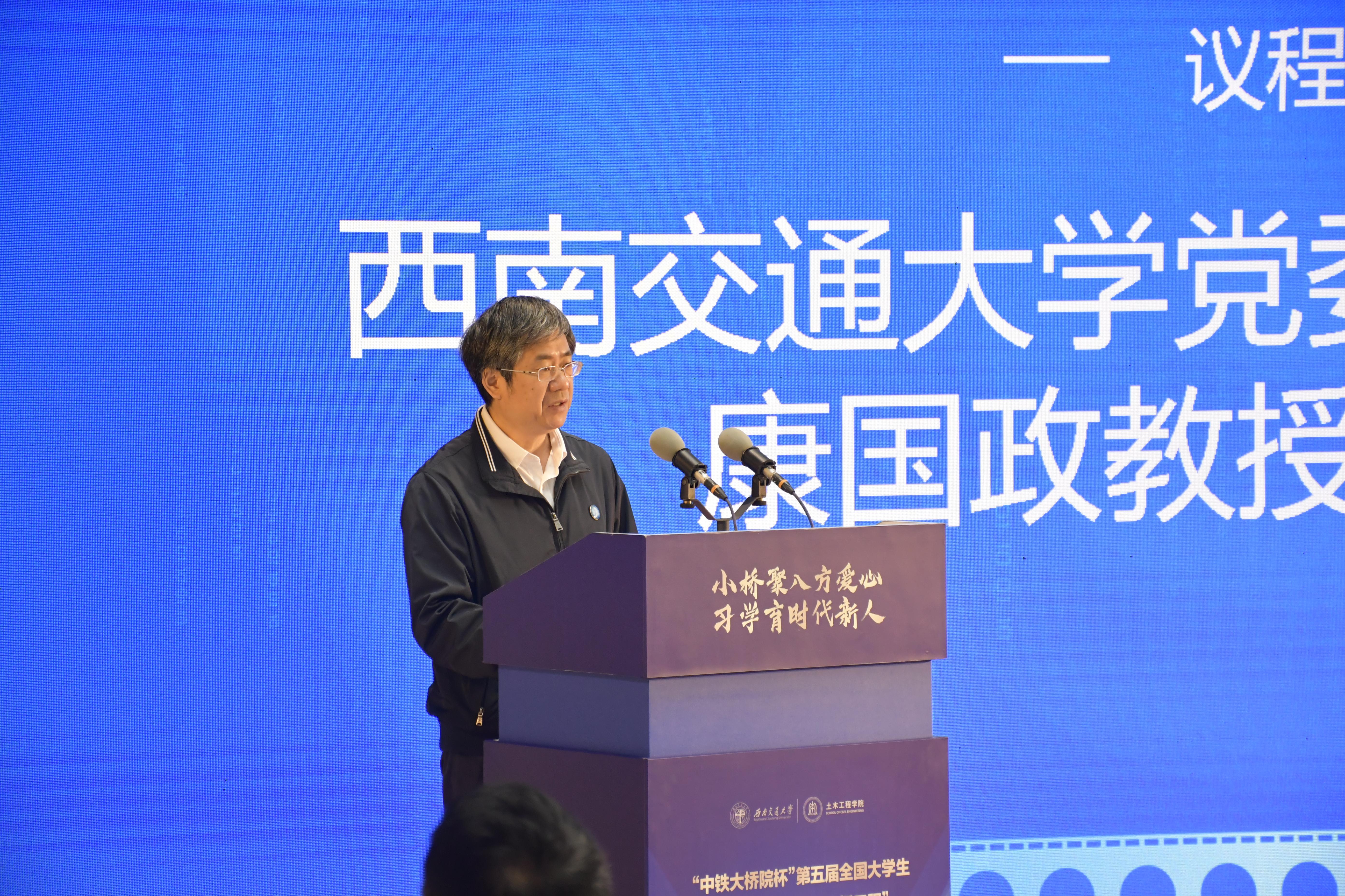整个议程主要包括五个部分:首先由西南交通大学党委常委、副校长康国政教授致欢迎辞。康副校长首先对孙院士、茅玉麟理事长、黄燕庆先生等人的莅临表示热烈的欢迎;“西南交通大学与茅以升先生有着很深的渊源,此次大赛旨在践行茅老‘先习后学,边习边学’的工程教育思想,以实际工程项目为载体,培养青年们的公益和创新精神。”康副校长如是说道。最后,康副校长也预祝此次大赛取得圆满成功,期望这次大赛能成为一次契机为更多贫困地区的孩子们架设安全的求学之桥。