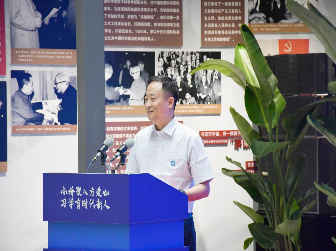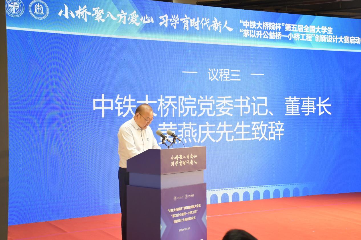 第三部分由中铁大桥院党委书记、董事长黄燕庆先生致辞。黄燕庆先生谈到:“中铁大桥院和茅以升的渊源很深。此次作为协办单位,我们将竭尽全力确保此次大赛的顺利开展,切实履行好央企的社会责任,同时也希望同学们始终赓续传承老一辈桥梁专家‘建桥报国’精神,努力奋斗,不断创新。”