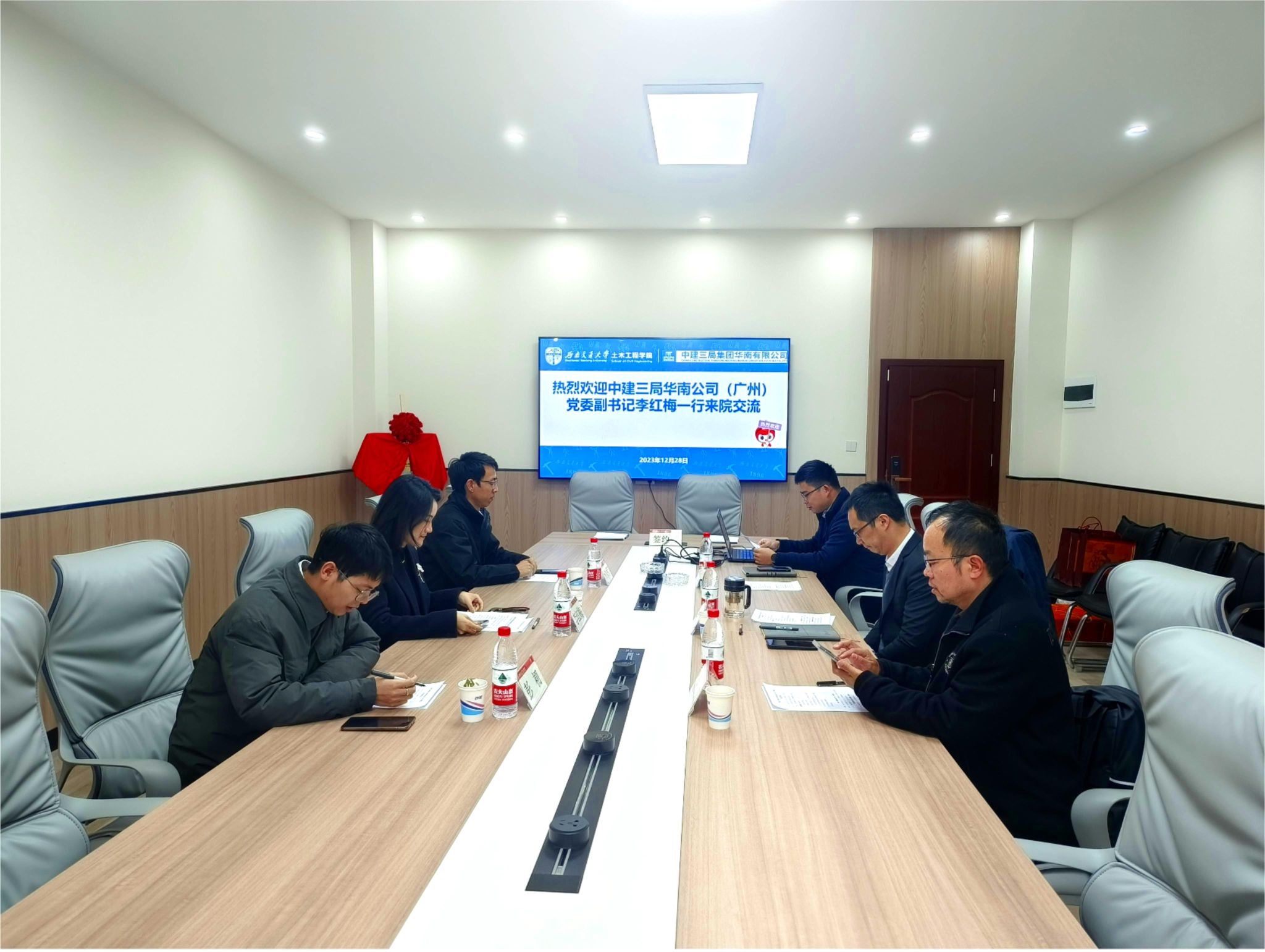 2023年12月28日上午9:30,中建三局华南公司(广州)党委副书记李红梅、人力资源部经理靳永桥、团总支书记彭初一行走访足球盘-足球让球盘