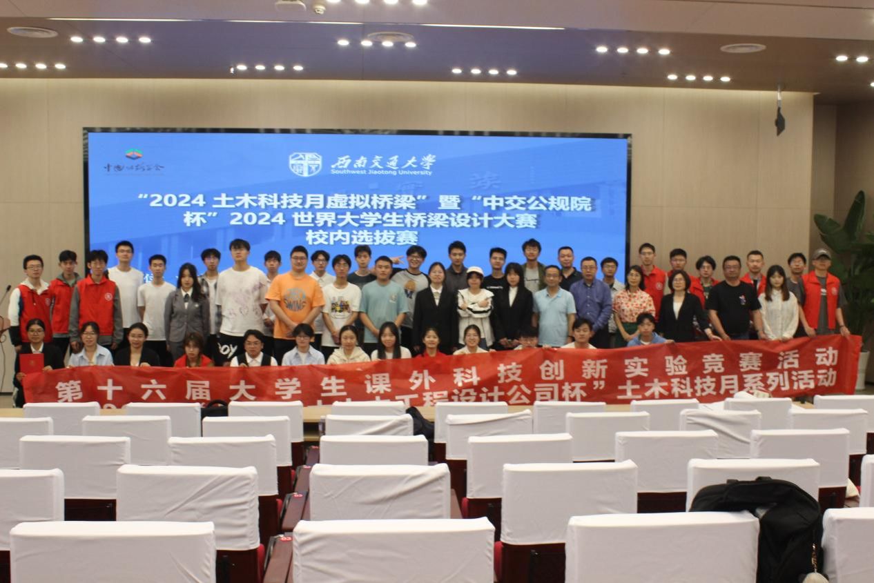主办,四川西南交大土木工程设计有限公司支持的“中交共规院杯”2024世界大学生桥梁设计大赛校内选拔赛在我校犀浦校区图书馆二号报告厅举行。四川省公路学会桥梁专业委员会秘书长,四川省公路规划勘察设计研究院有限公司桥梁分院院长刘振宇与土木足球盘